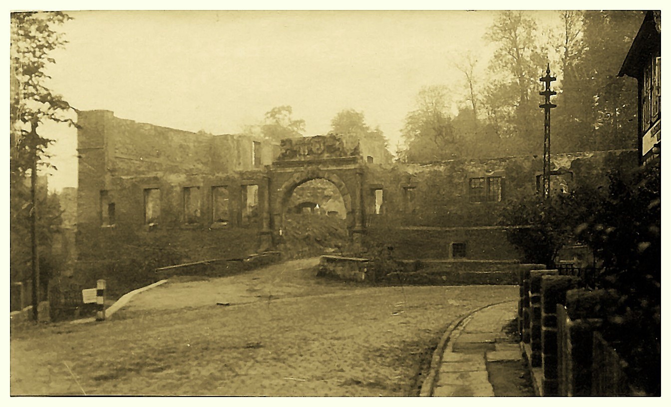 Die nachfolgenden Bilder zeigen das zerstörte Amtshaus Kriegsende 1945 und die Marinebilder mit den Modell-Schulungsschiffen auf der Weser. Diese Einheit war im ehemaligen Amtshaus untergebracht. In den Ithhöhlen wurden Ersatzteile für Uboote gebaut/gelagert und in Polle war die Verwaltung untergebracht. Man hatte die Ersatzeilbeschaffung von den Küsten ins Hinterland verlegt. Außerdem zu sehen der zerstörte Tigerpanzer nach den Kämpfen um Polle der 83. Amerikanischen Infanteriedivision.